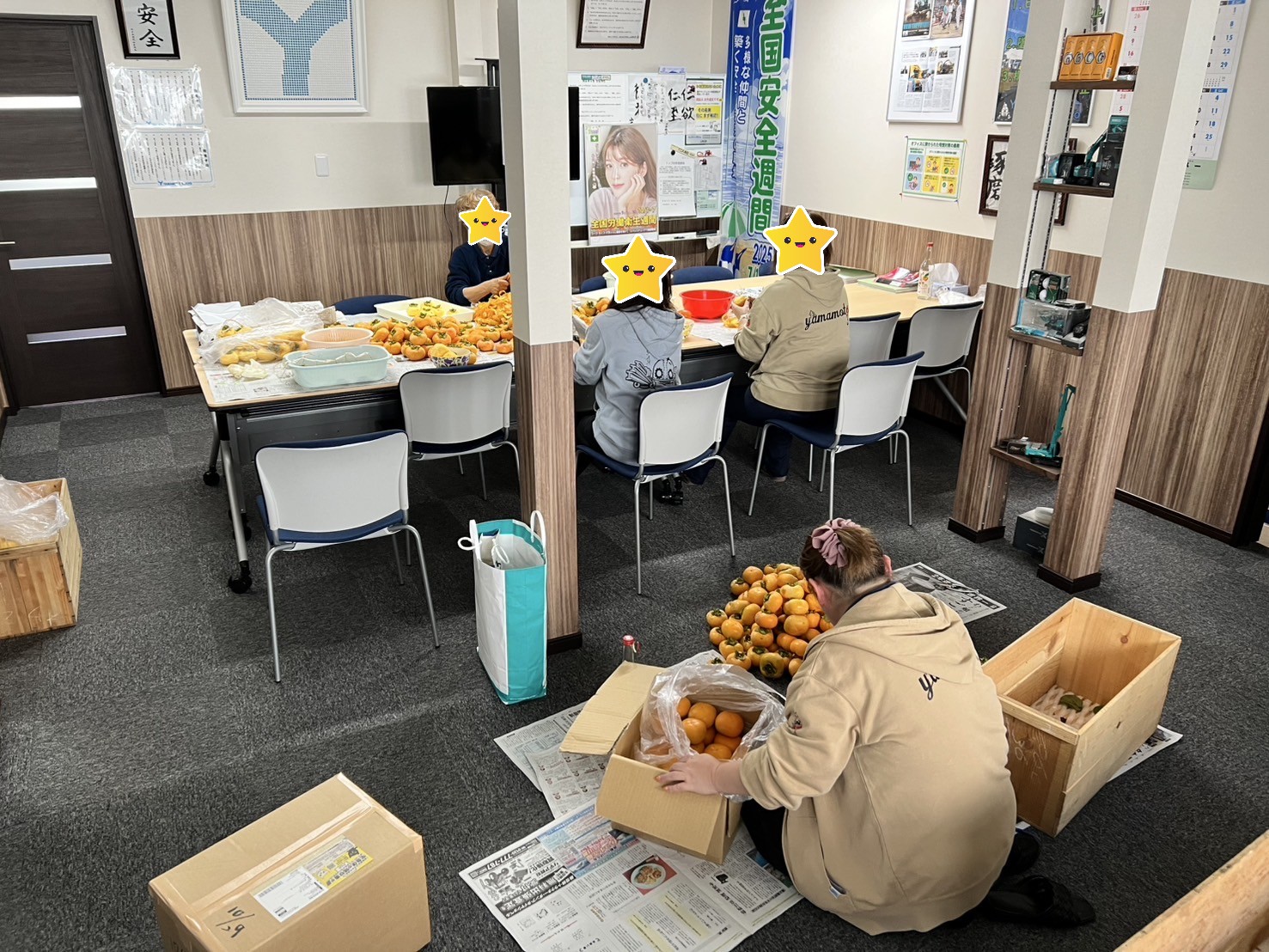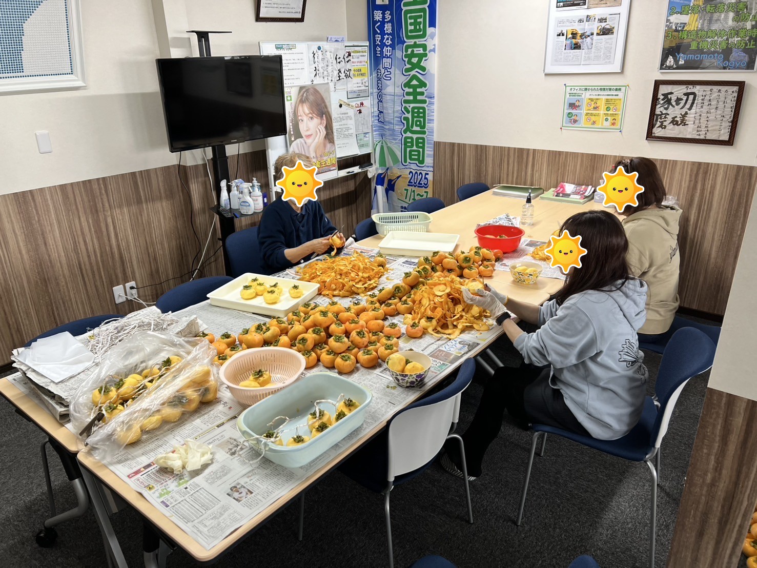 慣れた手つきで作業する私たちは柿工房の職人( ̄▽ ̄)